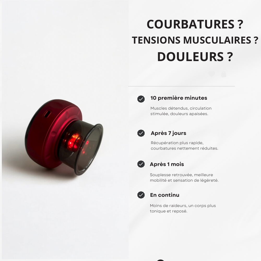 Comme toutes les ventouses, il peut laisser de légères marques rouges temporaires, preuve que la circulation a été activée. Elles disparaissent généralement en 24 à 48 heures.